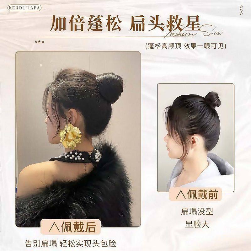 低扎丸子头假发鸡毛头抓夹盘发发包慵懒感造型头饰自然蓬松后脑勺