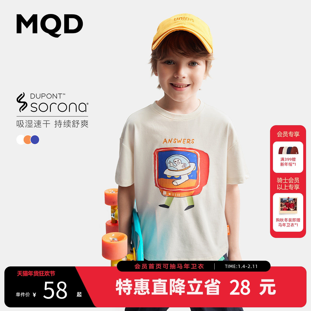 MQD童装 呼吸T儿童卡通短袖T恤夏装男童宽松运动上衣吸湿速干