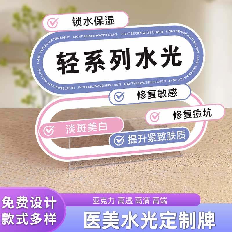 医美水光针桌牌亚克力展示架美容院医美水光提示牌立牌定制功效台卡水光展示架直播间功效广告立牌促销氛围牌