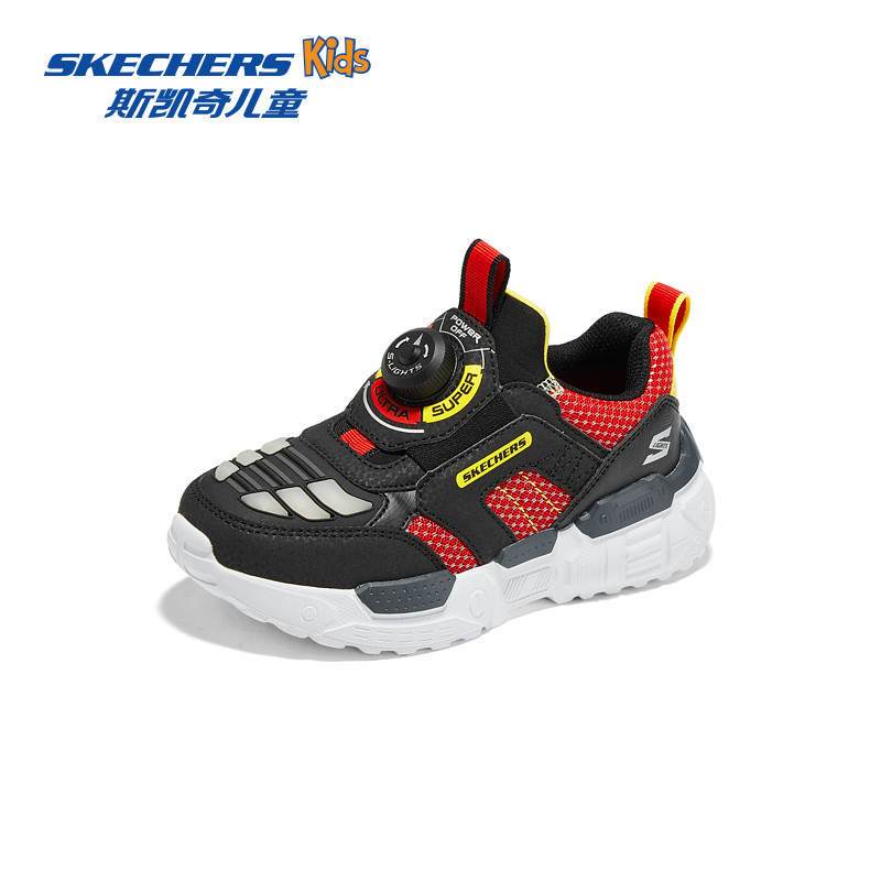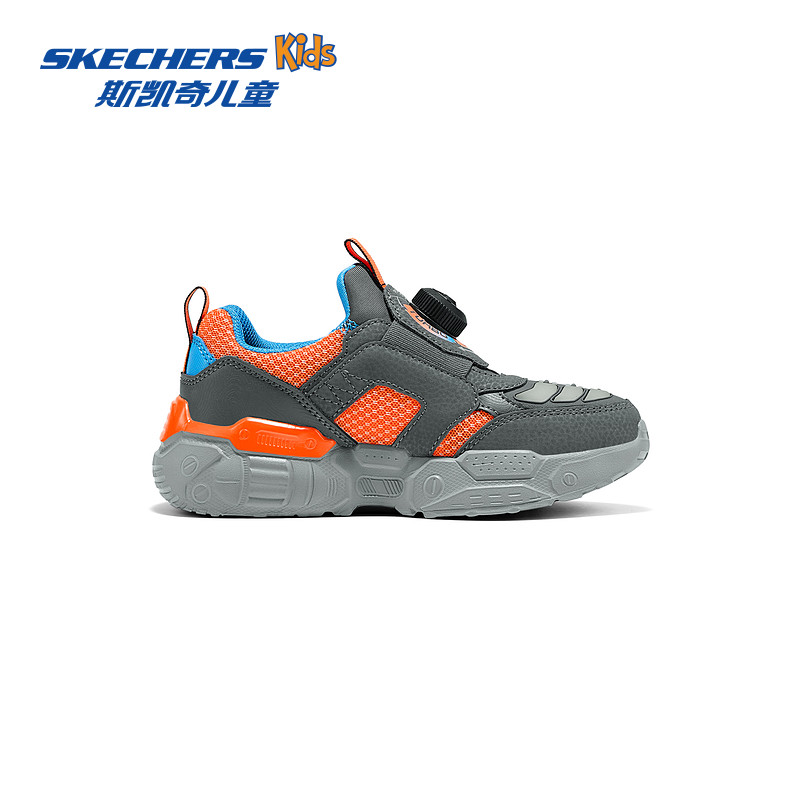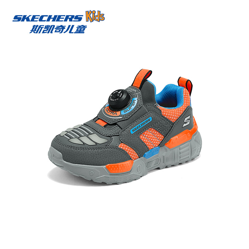 Skechers斯凯奇儿童机甲闪灯鞋男童炫酷旋钮运动鞋时尚耐磨休闲鞋
