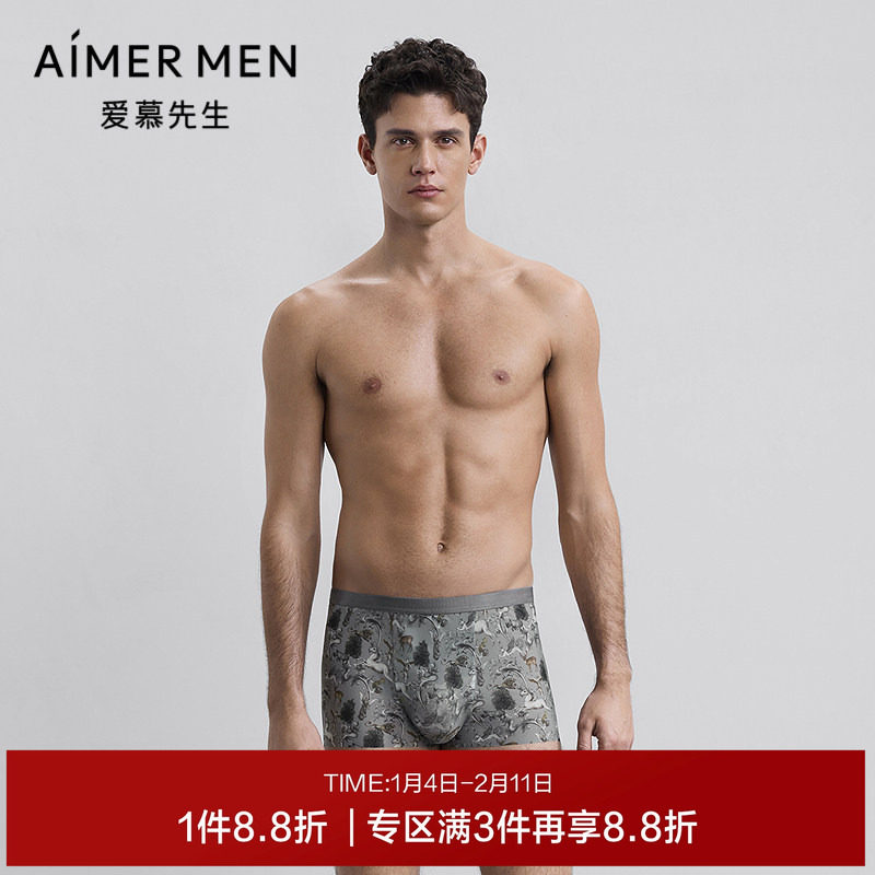 【USPACE】爱慕先生U型裤数码印花男士包腰平角内裤25秋冬新品