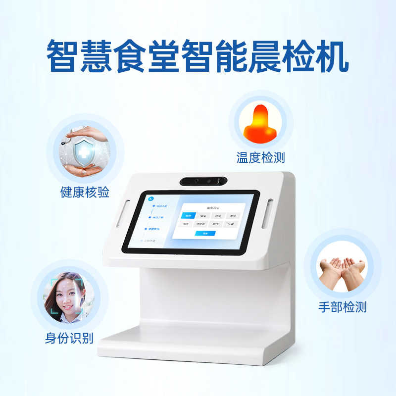 食堂智能晨检仪红外测体温考勤打卡连锁餐饮厨工健康监测身份人脸识别手部拍照预警提醒智慧食堂数据监管系统