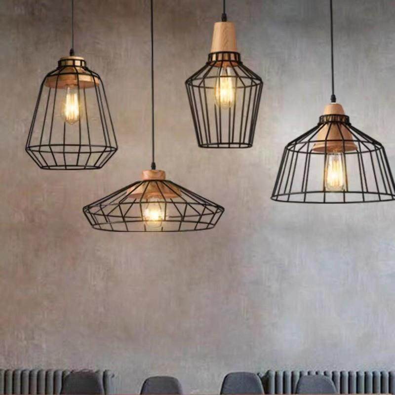 复古小吊灯工业风铁艺吧台烧烤店个性创意鸟笼灯罩美发店铺商用灯