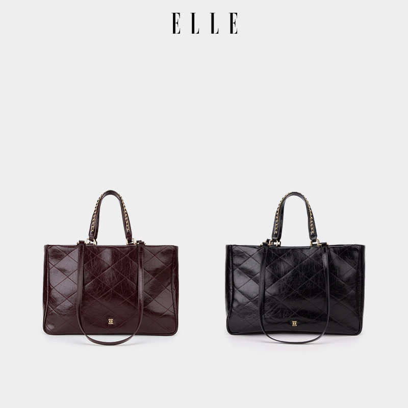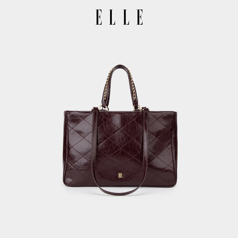 ELLE女包2025新款包包菱格手提托特包大容量通勤时尚女士单肩腋下