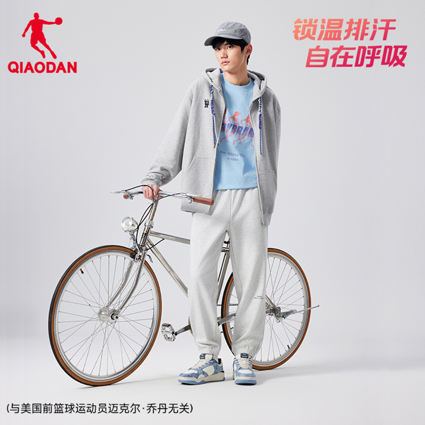 乔丹加绒保暖潮流字母卫裤男生2025冬季新款超暖绒收口百搭裤子