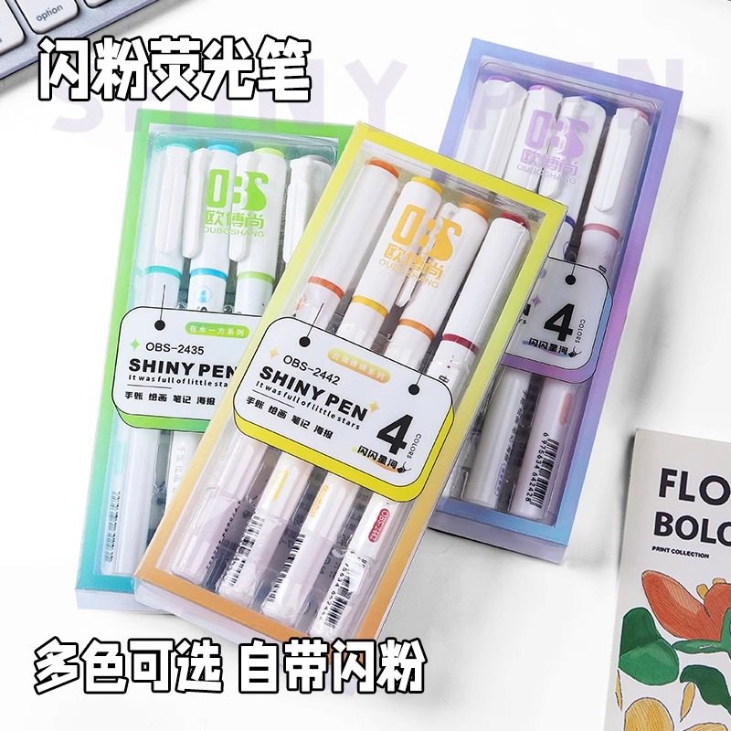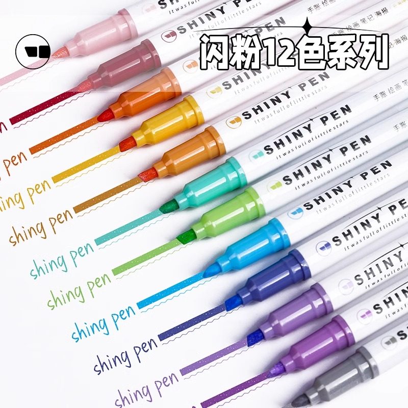 彩色闪光笔学生用儿童闪亮轮廓闪粉高光水彩笔啫喱发光流沙银光