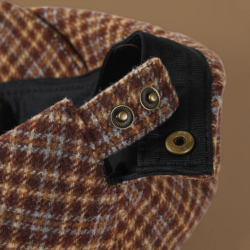 新款复古格子前进帽子女春秋季时尚画家帽显脸小鸭舌贝雷帽潮条纹