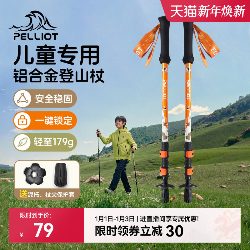 伯希和户外儿童登山杖超轻伸缩铝合金爬山专业装备徒步轻便手杖