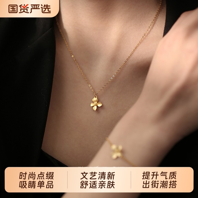 周大生四叶草项链纯银女轻奢新款设计高级感锁骨链圣诞礼物送女友