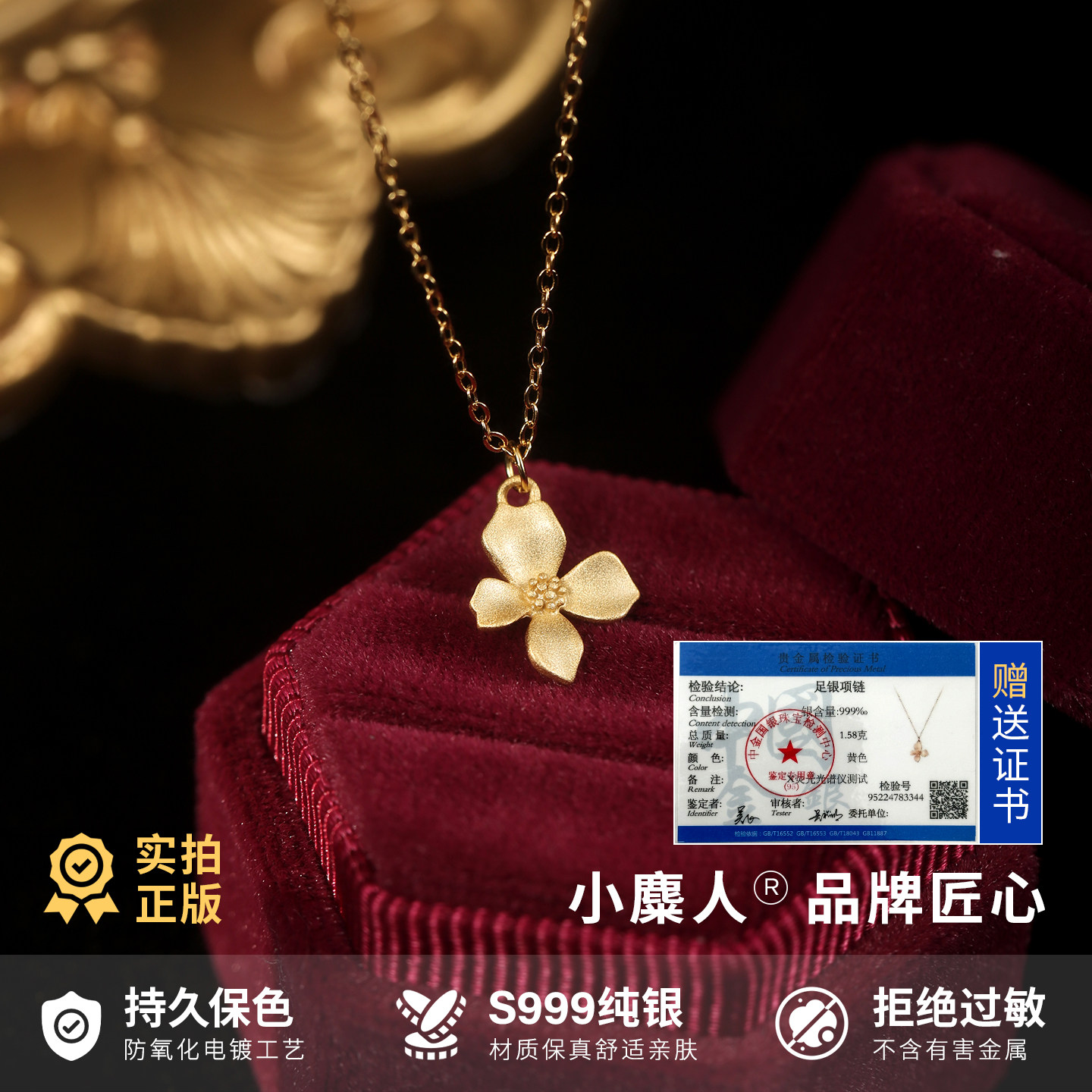 小麋人999纯银栀子花吊坠项链女锁骨链高级感小众设计2025年新款