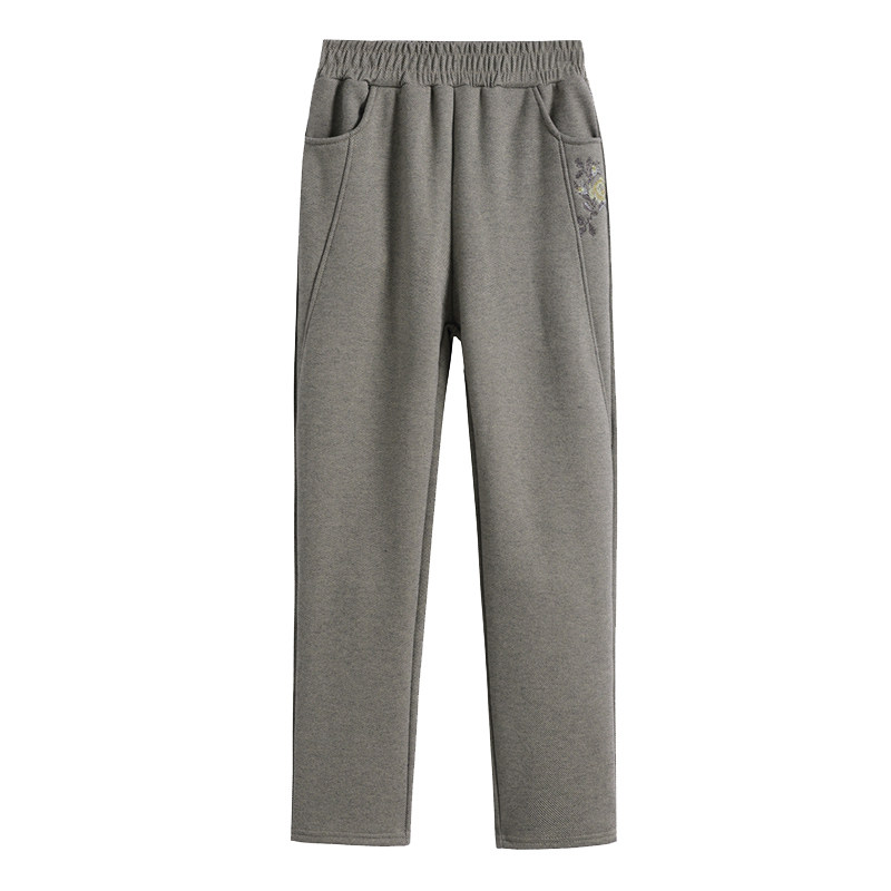 妈妈裤子春秋款松紧高腰弹力中老年女裤宽松大码直筒奶奶加绒长裤