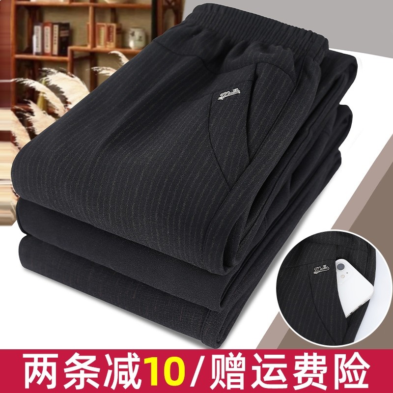 妈妈裤子春秋款松紧高腰弹力中老年女裤宽松大码直筒奶奶加绒长裤