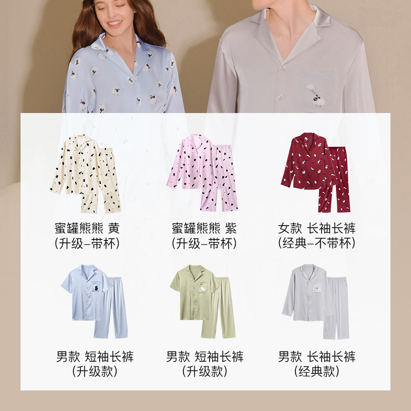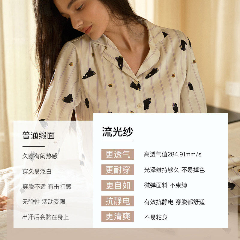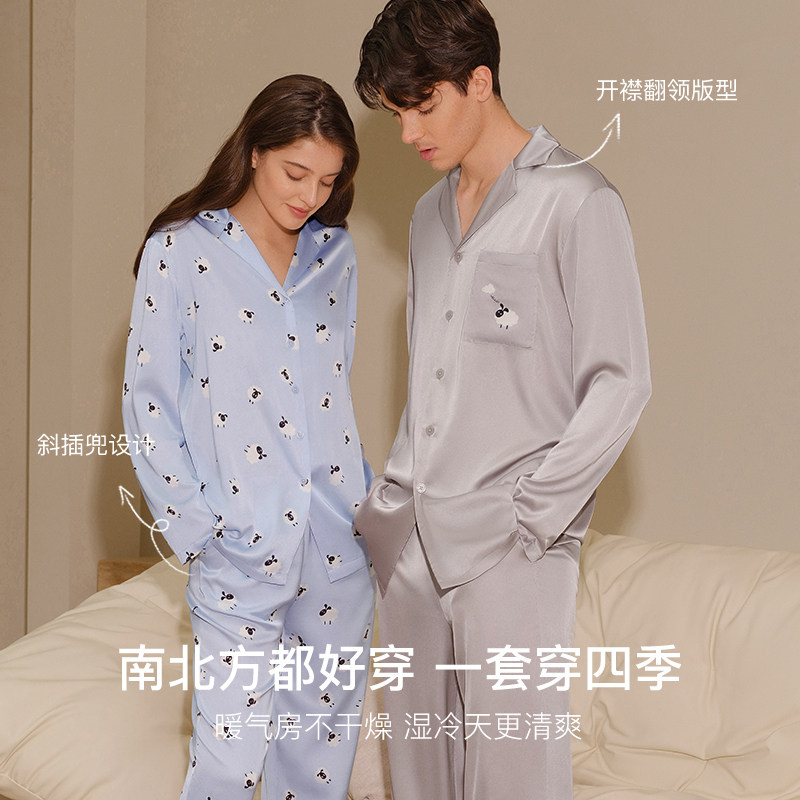ubras流光家居服女士缎面睡衣长袖长裤可外穿情侣套装男款秋冬季