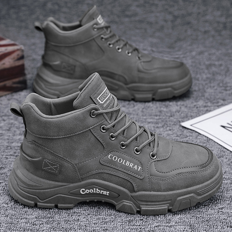 冬季高帮男鞋英伦风中帮工装马丁鞋防水防滑工地上班防滑劳保潮鞋