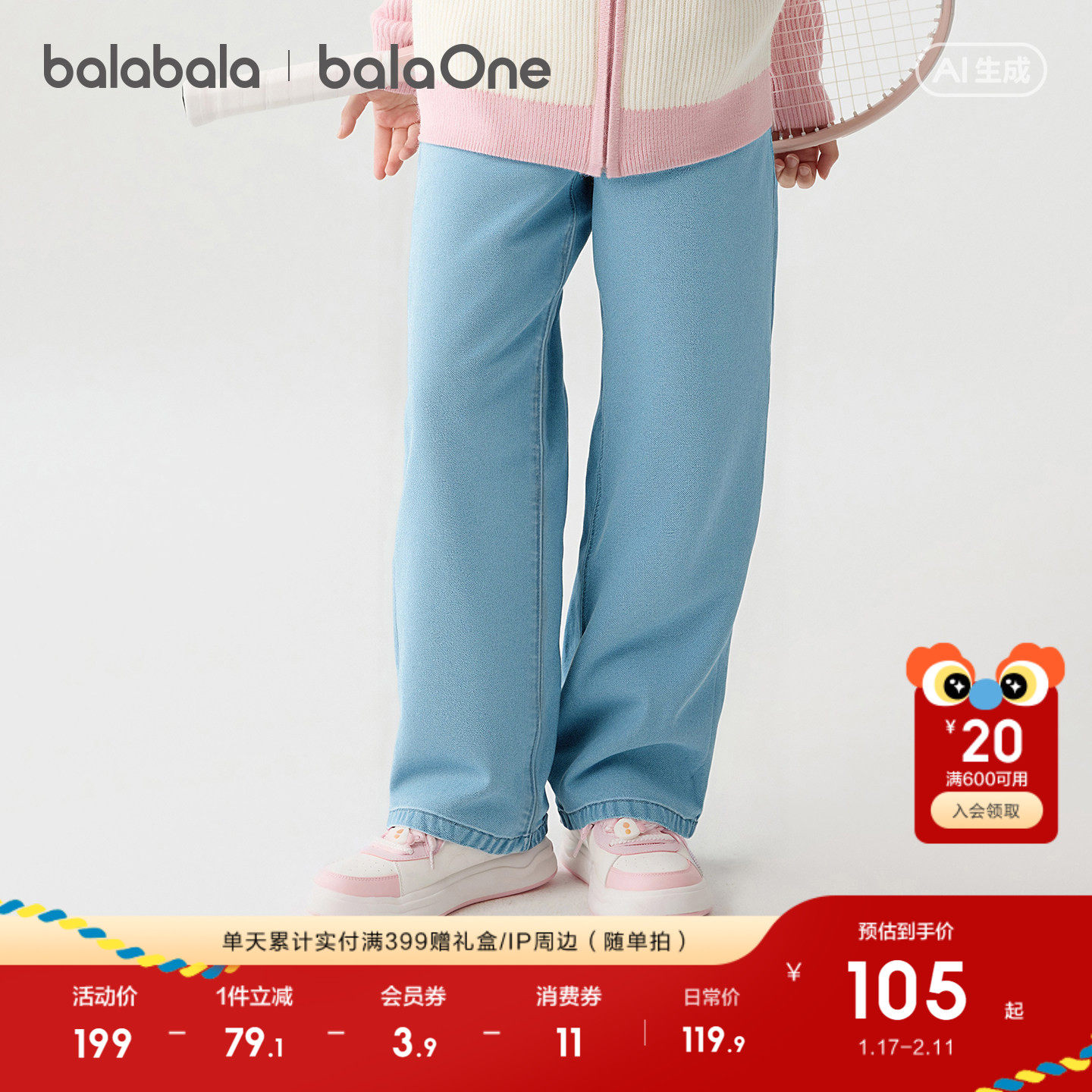 巴拉巴拉童装女童长裤宽松直筒牛仔裤2026春装新款大童裤子休闲潮
