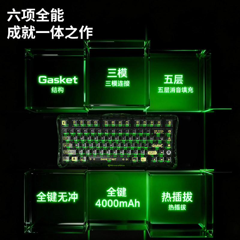 重力星球破茧75机械键盘透明无线三模电竞游戏专用电脑男生蓝牙