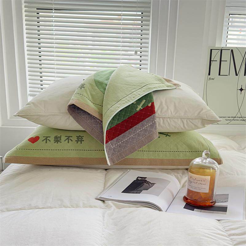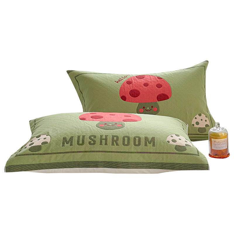 全棉A类纱布枕巾可爱刺绣八层提花棉纱枕皮52x80cm成人学生家用