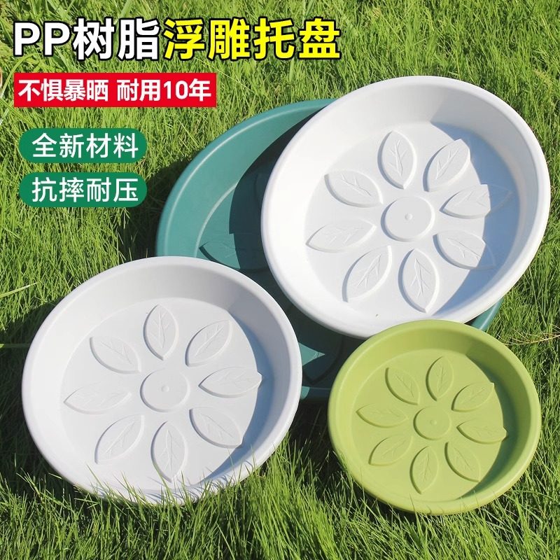 加厚树脂花盆托盘塑料花托底座接水花盘透气花架盆圆形垫底白绿色