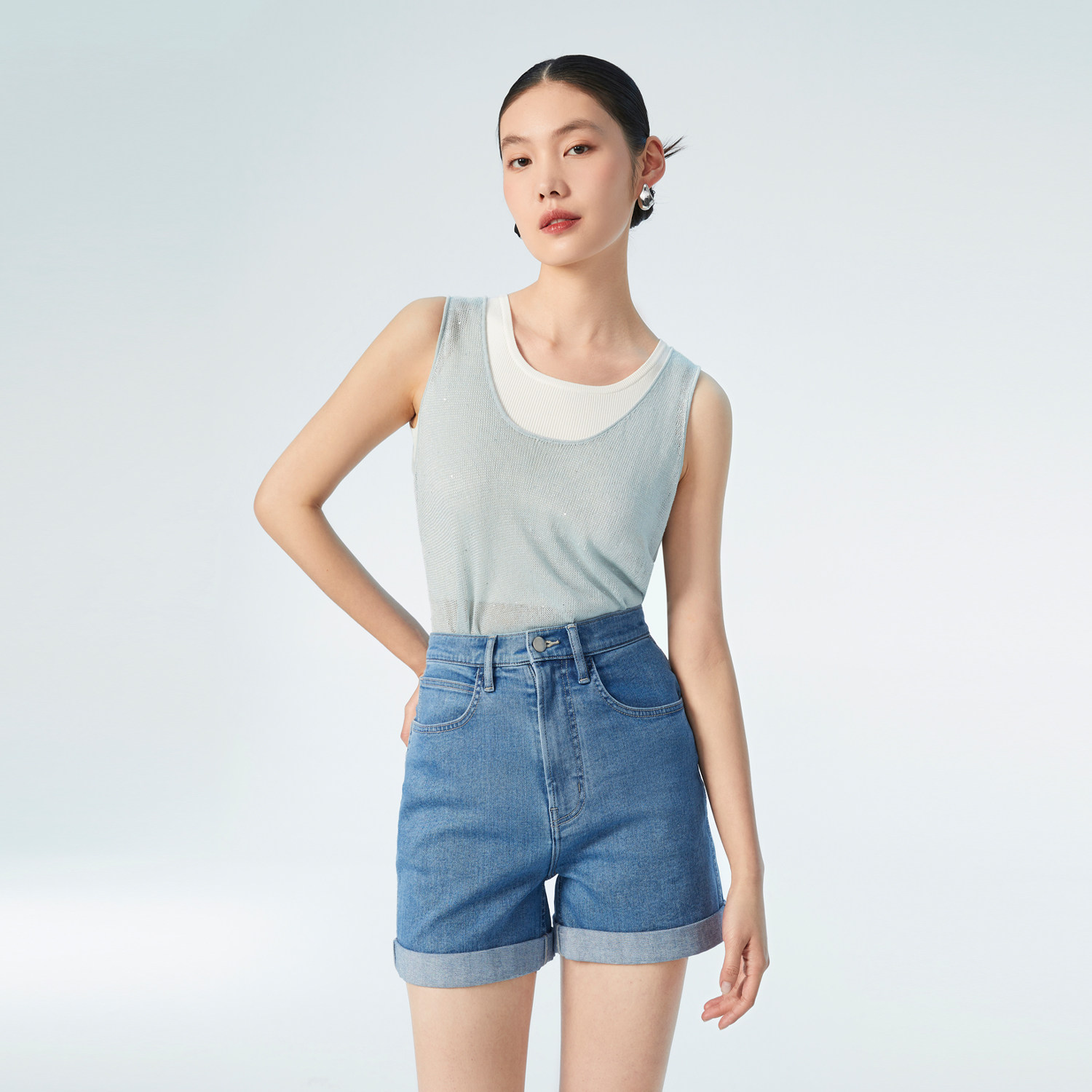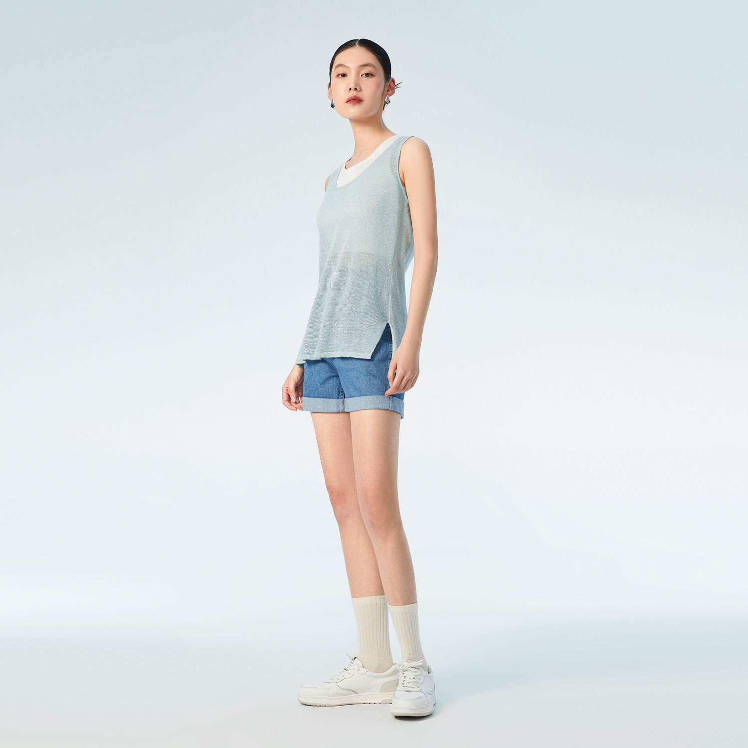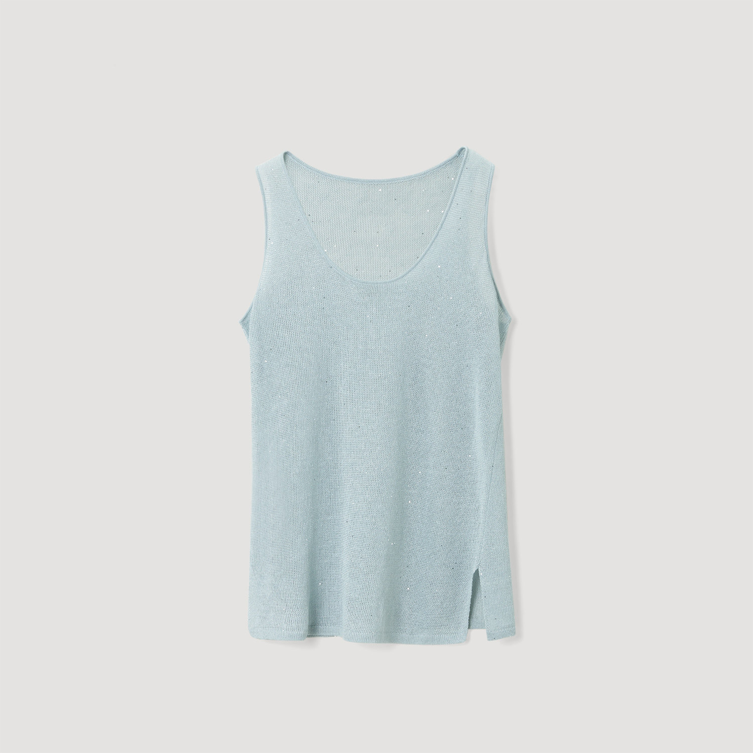 OVVOutlet 春夏新款女装亚麻珠片内搭外穿休闲时尚针织长款背心