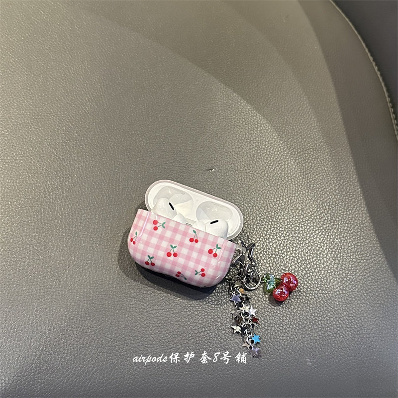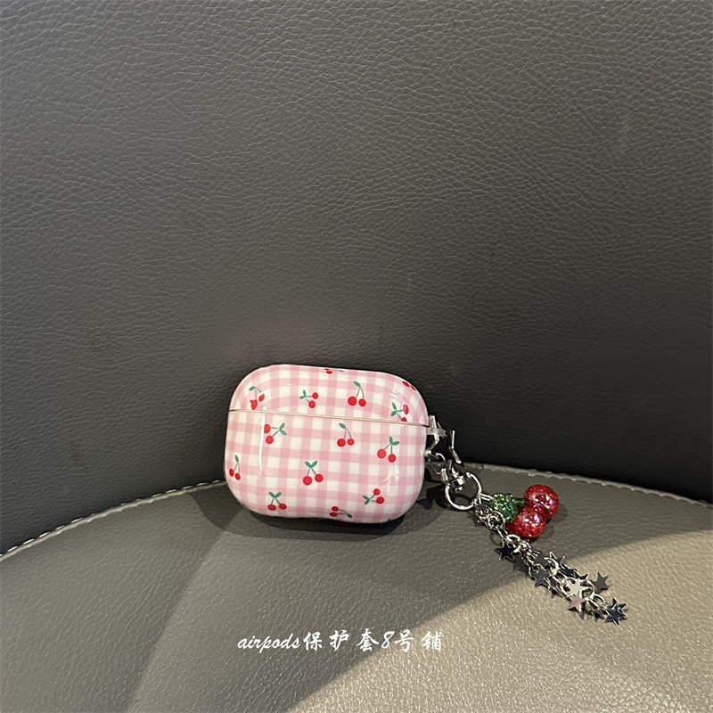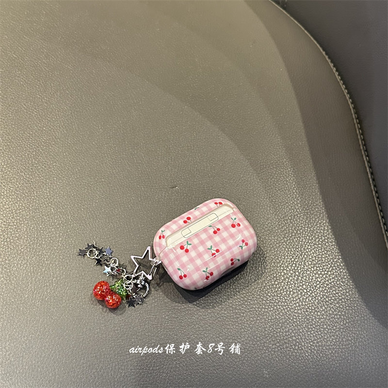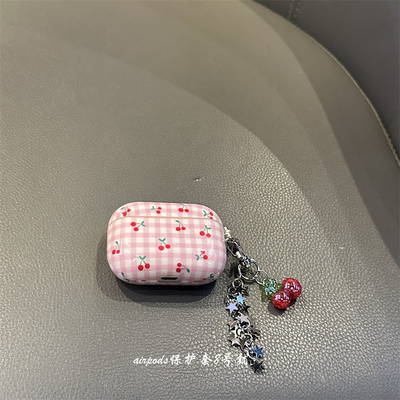 甜美格纹樱桃适用于airpods pro4代保护套2代3代苹果耳机壳