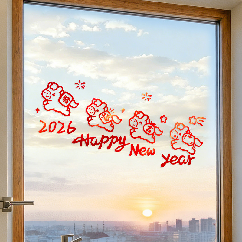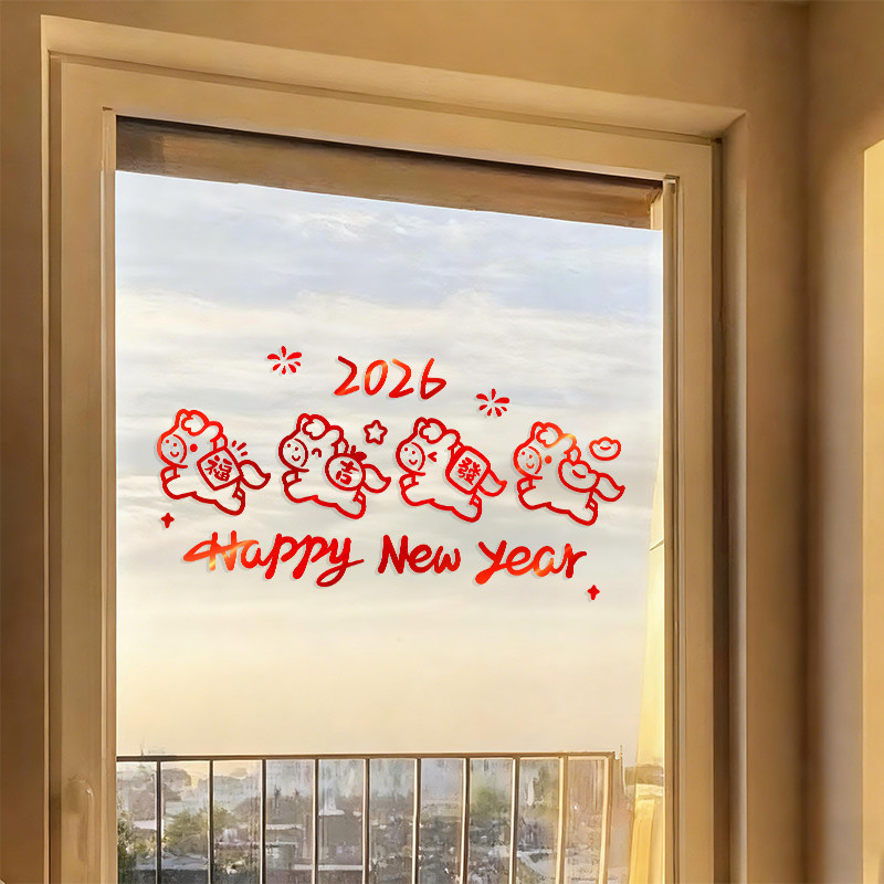 新年玻璃窗贴静电贴纸2026新款马年春节装饰过年氛围布置贴画窗花