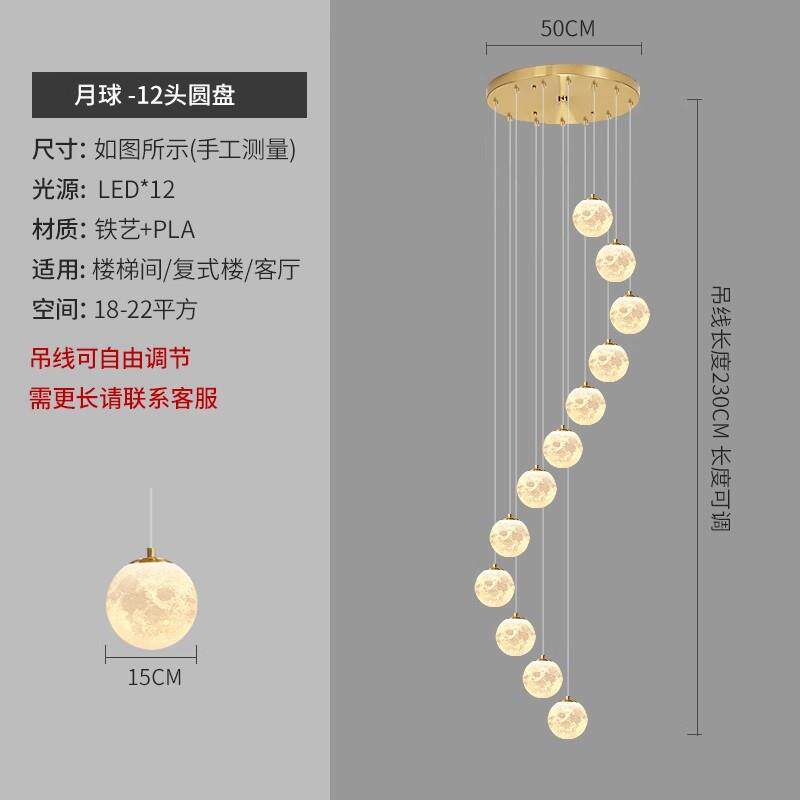 3D打印月球楼梯吊灯长吊灯复式楼楼梯间别墅氛围客厅挑空长线吊灯