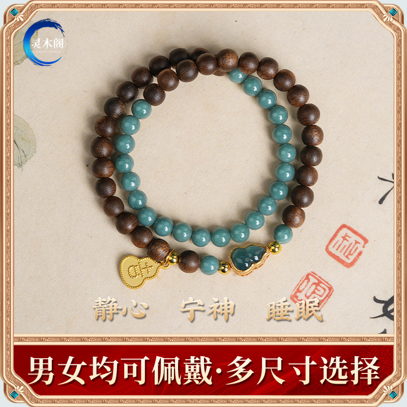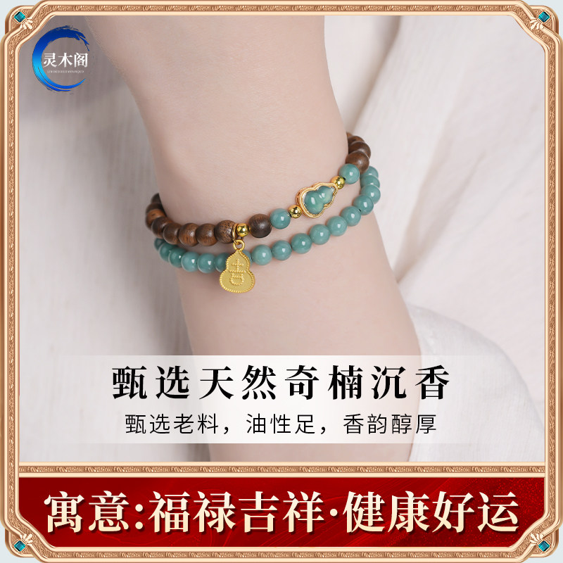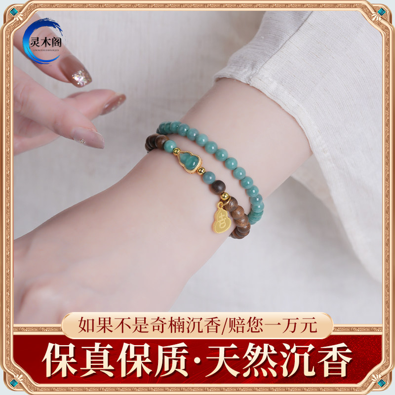 奇楠沉香手串赵丽颖同款手链天然檀木檀香双圈翡翠葫芦小米珠安神