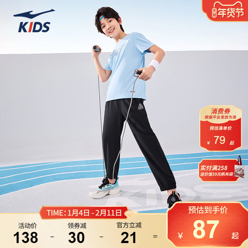 鸿星尔克男童夏季套装短袖长裤两件套运动速干透气T恤防蚊裤套装