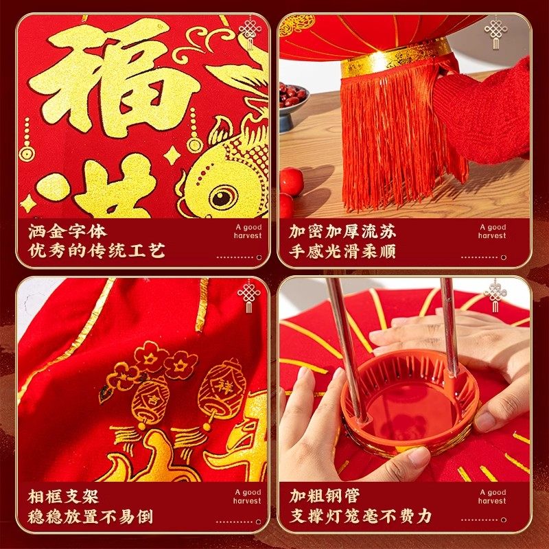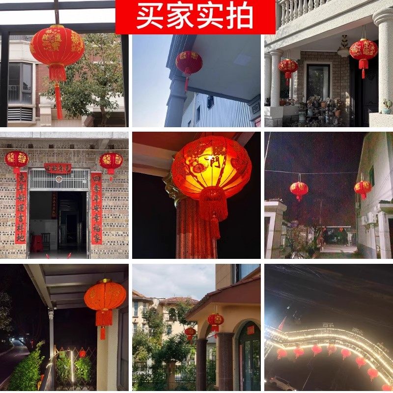 小灯笼串户外连串挂饰大红植绒灯笼节日喜庆装饰元旦场景布置灯笼