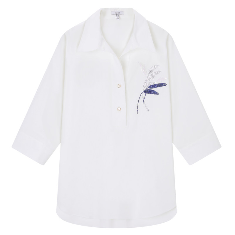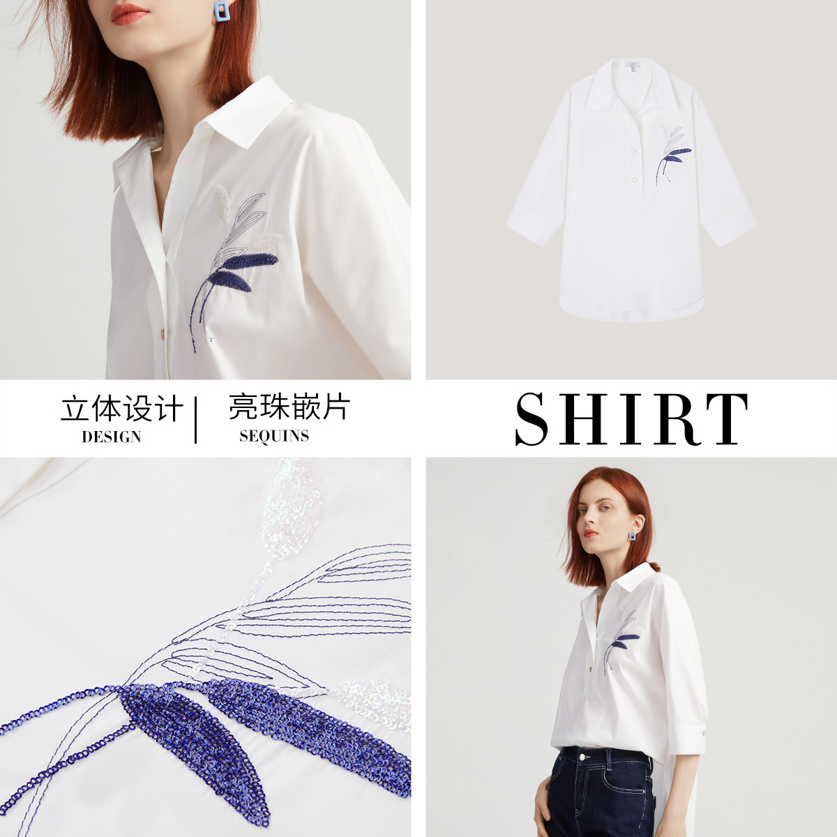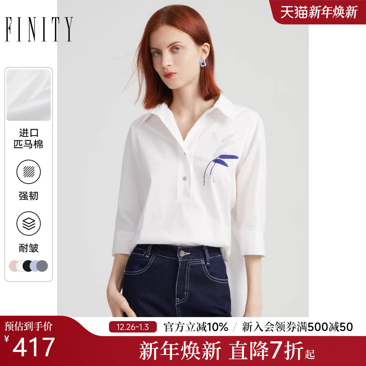 FINITY白色设计感衬衫2025秋新款小众别致胸口印花减龄薄款上衣
