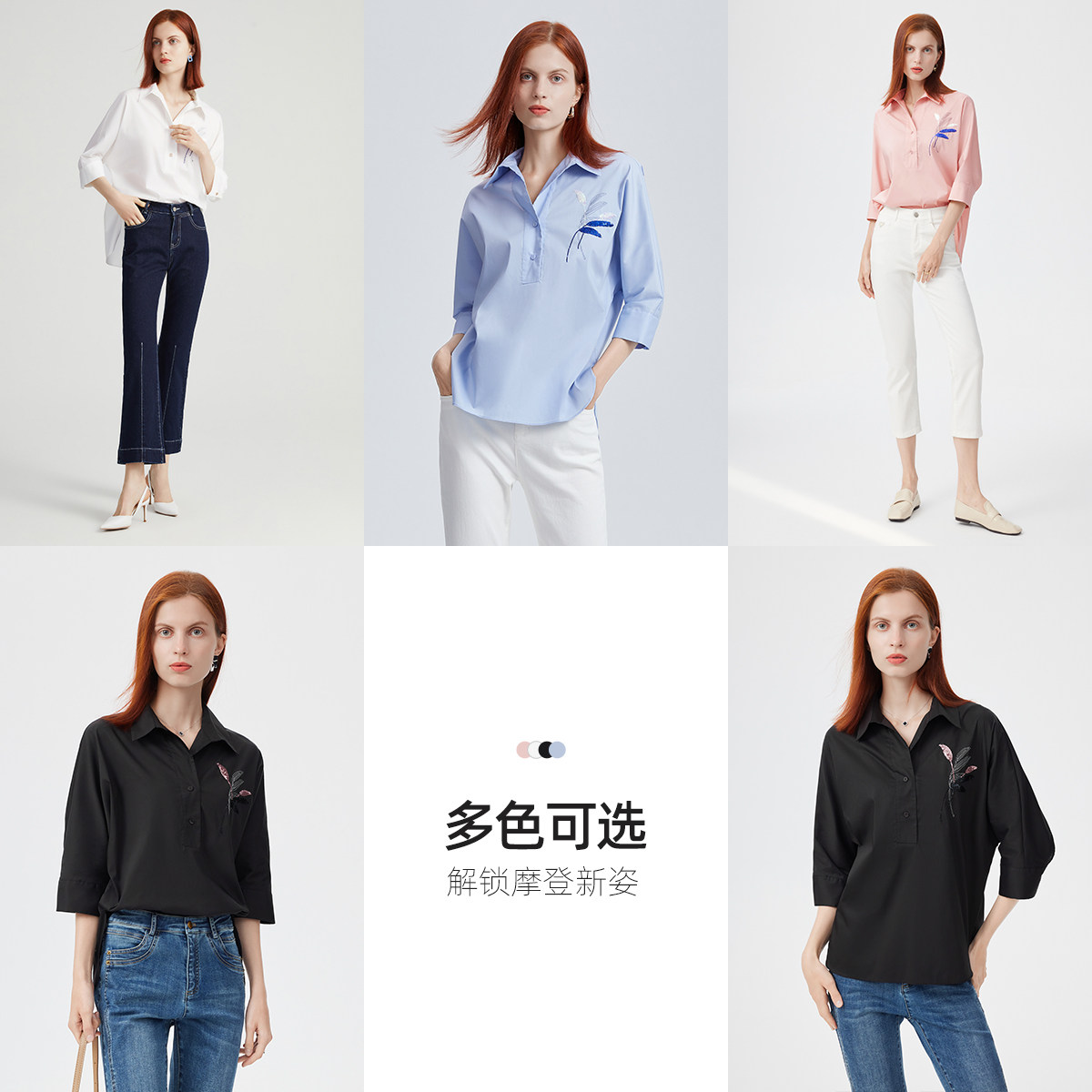 100棉|罗蒙春秋女士长袖衬衫竖条纹休闲百搭宽松衬衣女上衣外套