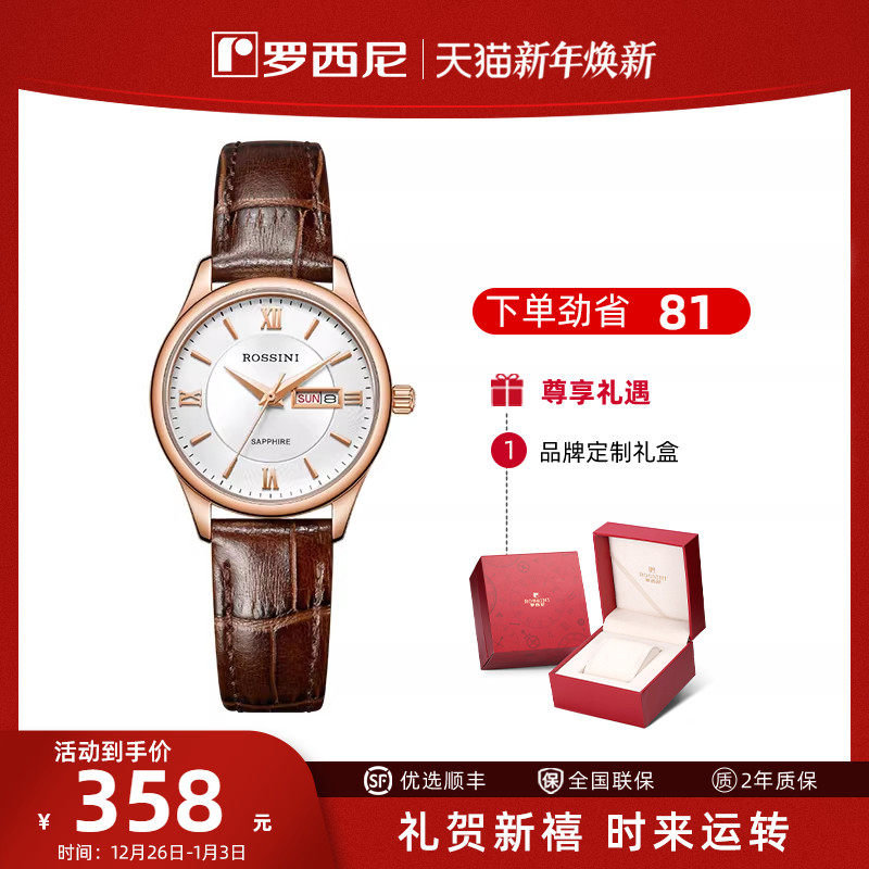罗西尼手表女学生石英表品牌正品复古简约皮带情侣女表618574