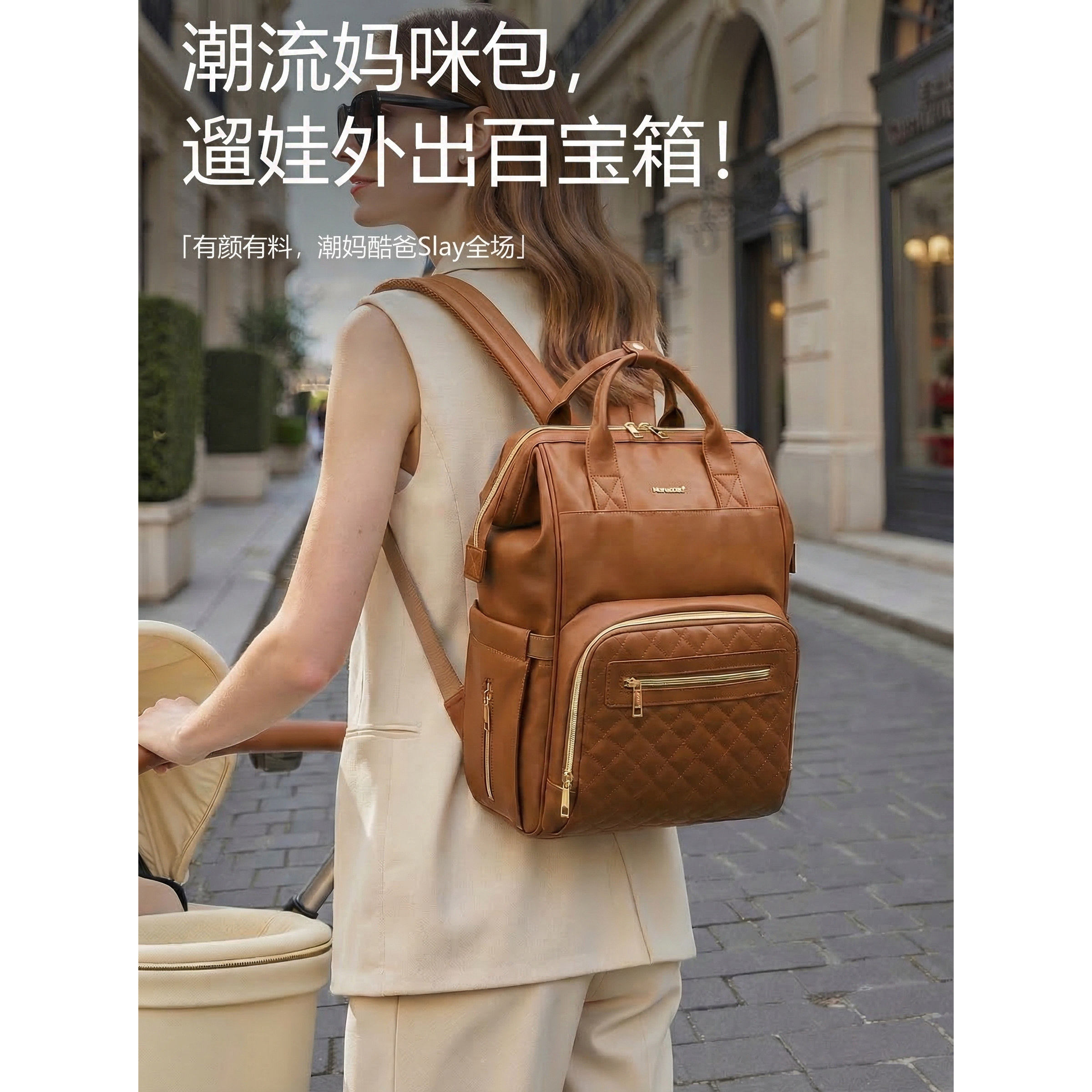 【新品】婧麒妈咪包PU皮高颜值大容量背包外出轻便母婴包2026新款