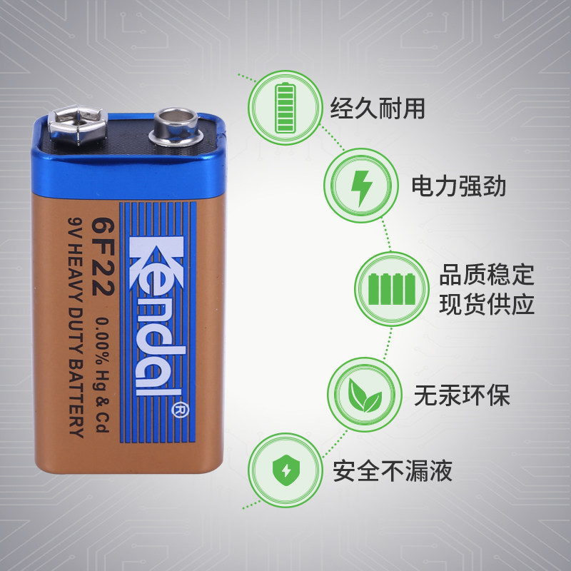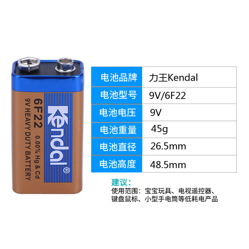 Kendal力王9V 6F22叠层方形1604G话筒万用表乐器麦克风碳性电池