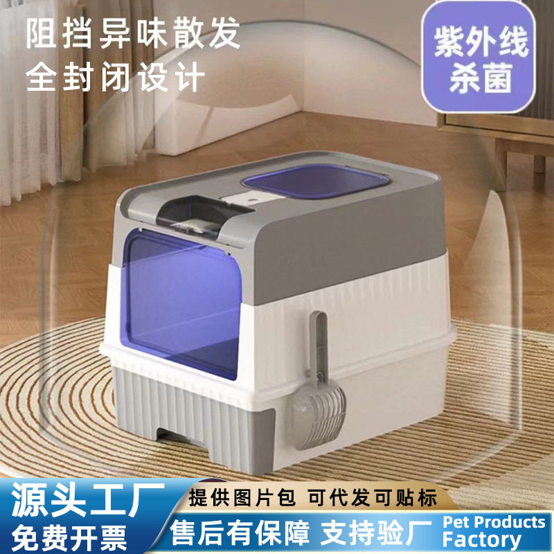 猫砂盆超大号防外溅全封闭顶入式杀菌防臭貓砂盆工厂批发猫厕所