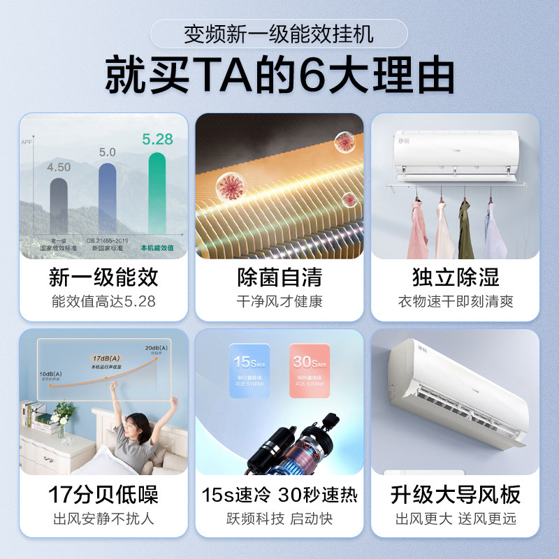 海尔空调1.5匹挂机新一级能效变频冷暖卧室挂机壁挂式空调