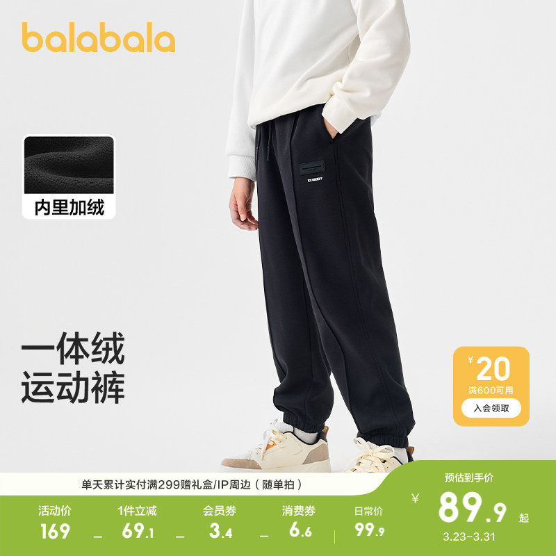 巴拉巴拉童装儿童裤子男童秋冬装加绒长裤潮洋气保暖加厚休闲大童