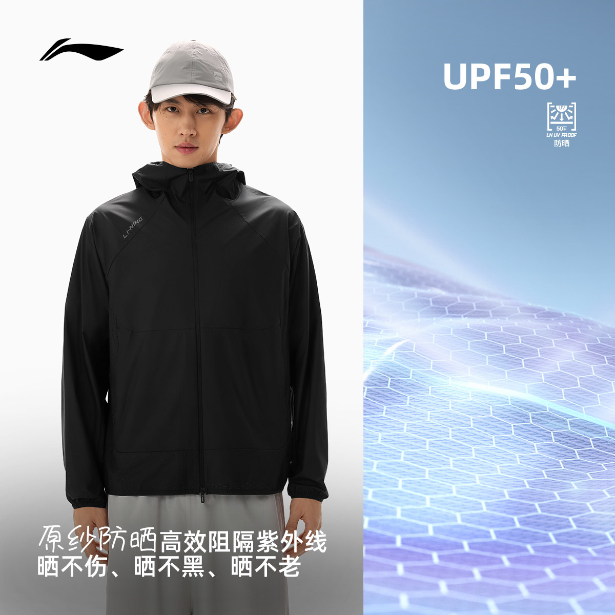 李宁防晒衣男26春夏新品轻薄透气连帽外套户外易收纳冰丝运动风衣