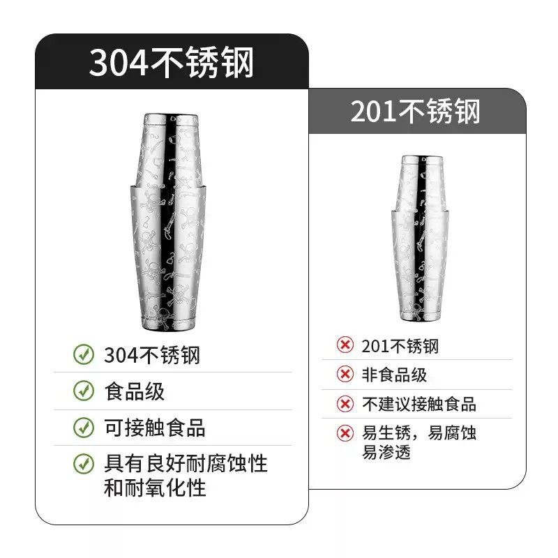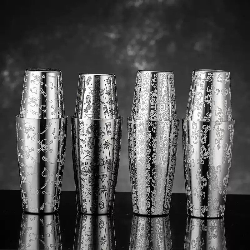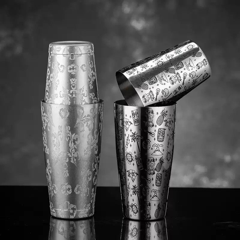 不锈钢摇酒壶酒吧调酒工具鸡尾酒shake杯雪克壶蚀刻波士顿调酒器