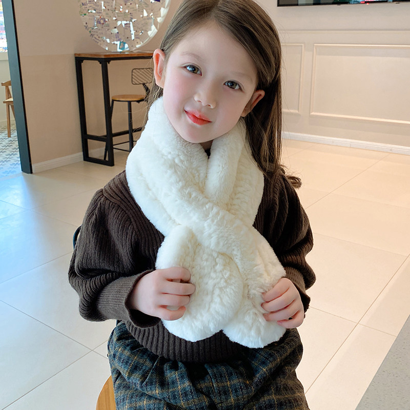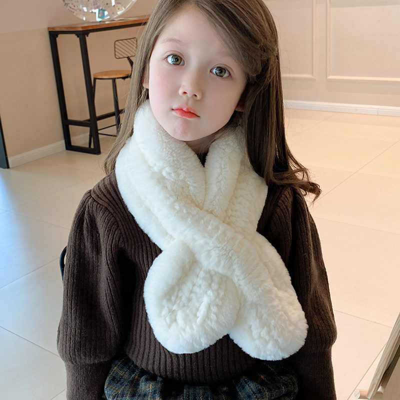 韩版纯色獭兔毛儿童围巾秋冬季保暖加厚男女宝宝防风可爱百搭围脖