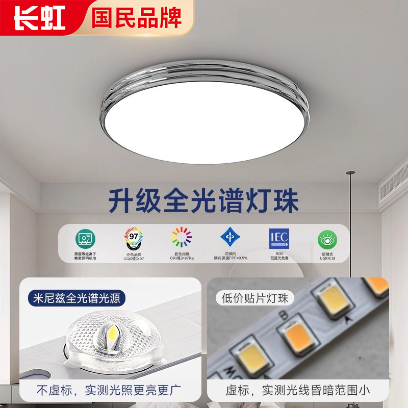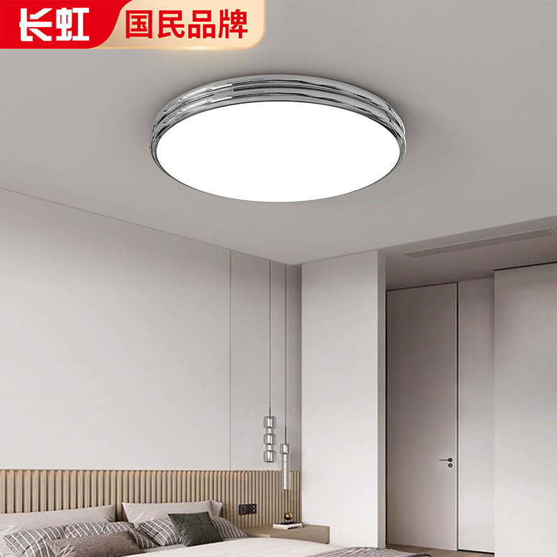长虹包豪斯中古风全光谱主卧室吸顶灯铬色极简护眼书房灯银色灯具