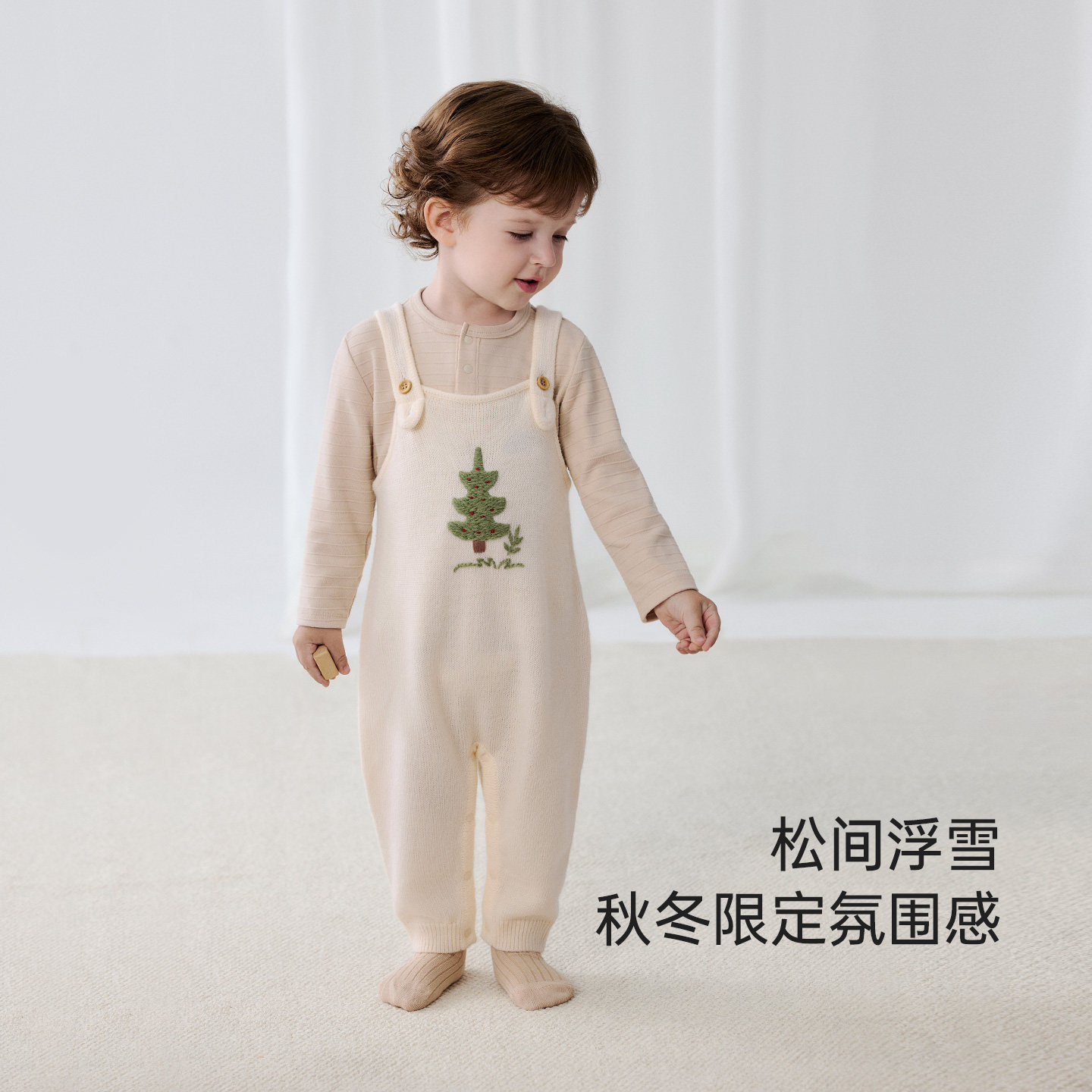 babylove婴儿背带裤秋冬针织裤子羊毛宝宝圣诞连体长裤浮翠流丹