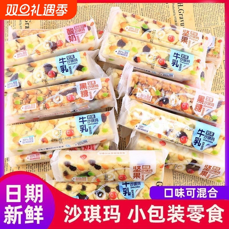坚果鸡蛋原味沙琪玛牛乳蔓越莓黑糖休闲糕点早餐零食小吃独立包装