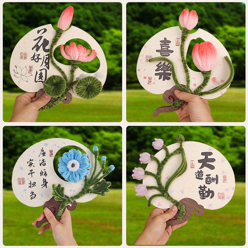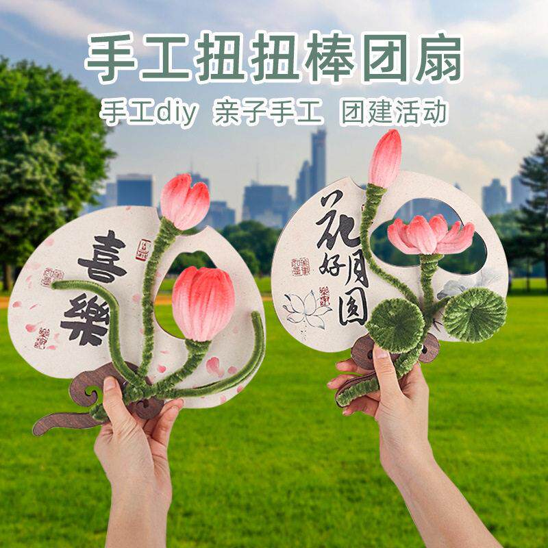 母亲节扭扭棒团扇手工diy诗词书法扇子材料包国风亲子社区廉洁