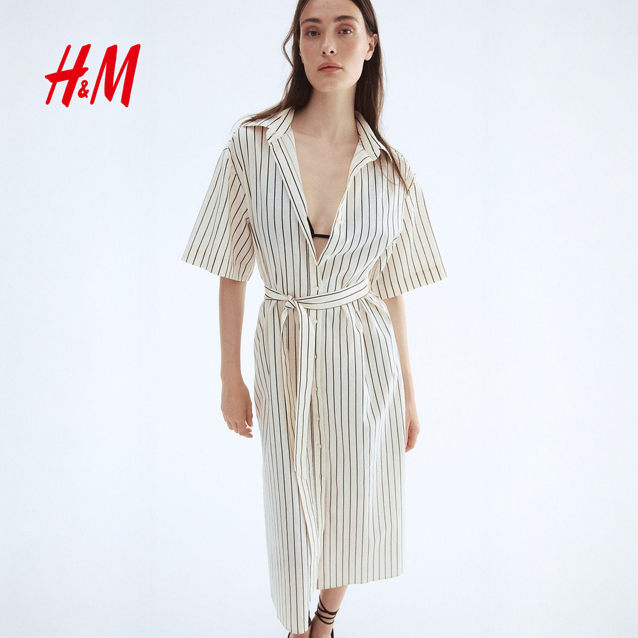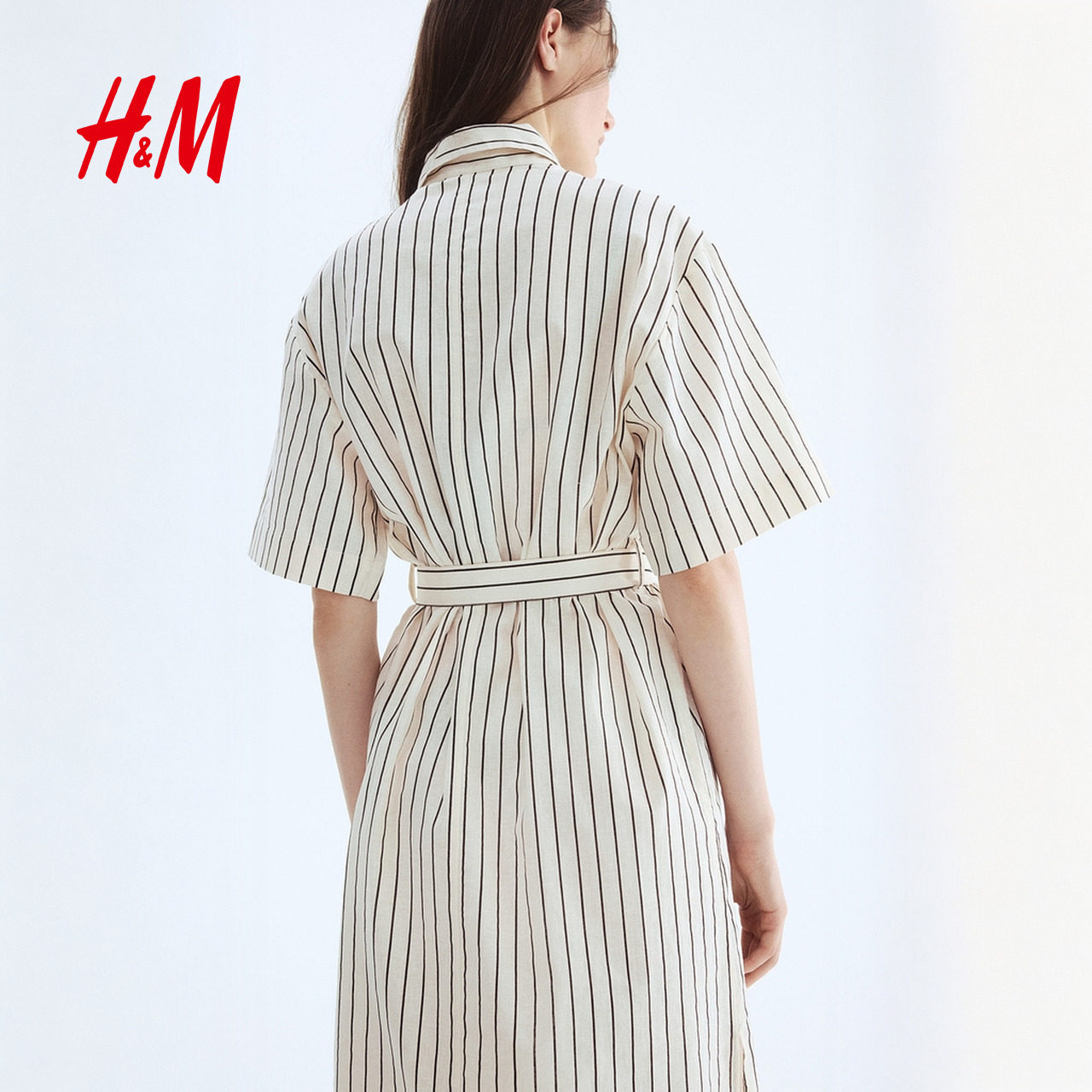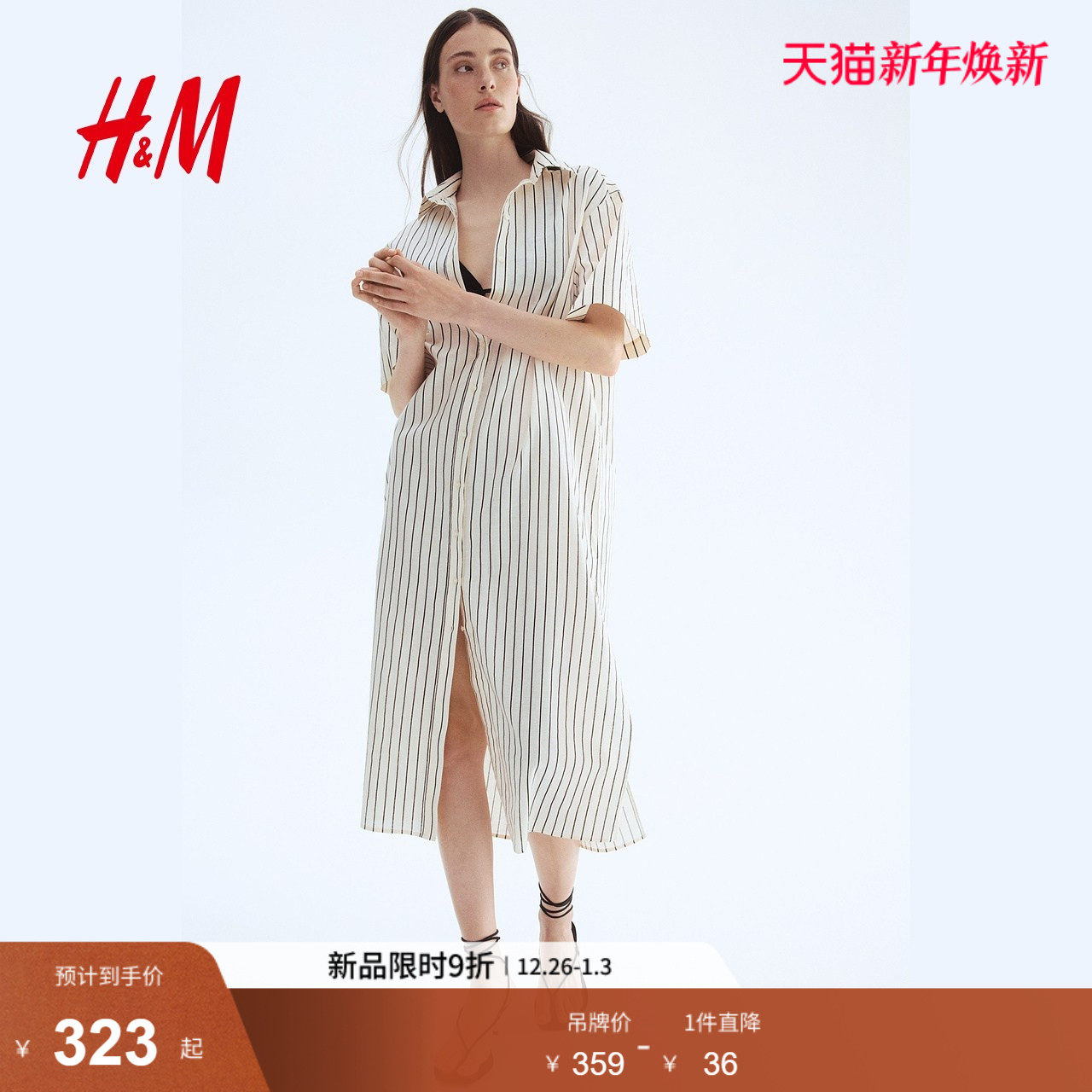 HM女装连衣裙2025年冬季新款亚麻混纺衬衫式连衣裙1278042