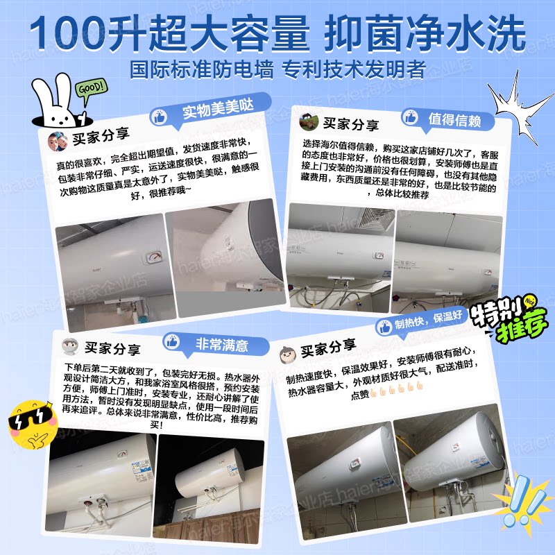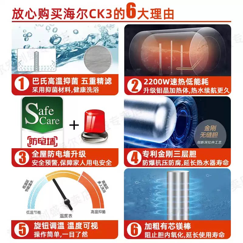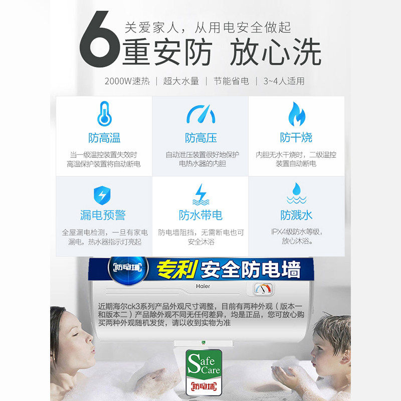Z海尔电热水器电家用洗澡100升大容量60L80升节能储水式CK3官方店