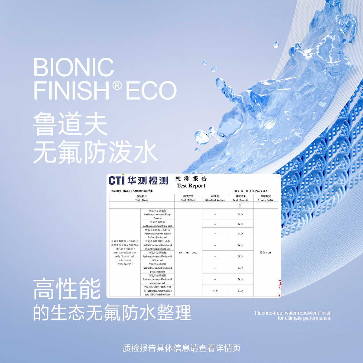 无氟防泼水面料;刺绣图案;RELAXED微宽松