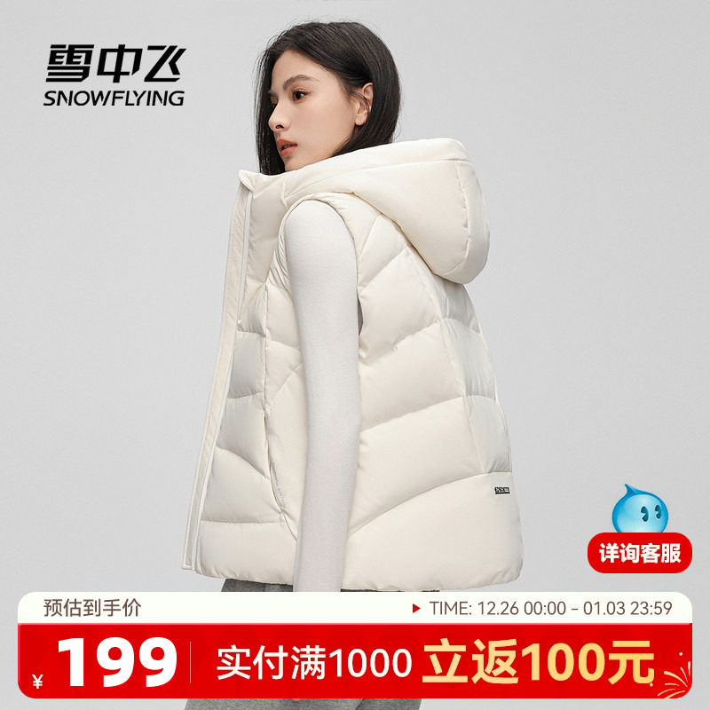 雪中飞2025冬新款女士羽绒马甲连帽通勤百搭叠穿时尚保暖纯色