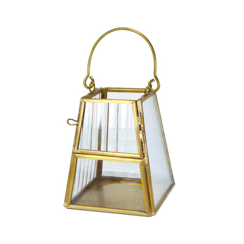 批发梯形手提水晶玻璃风灯欧式创意风灯烛台摆件蜡烛玻璃金属风灯