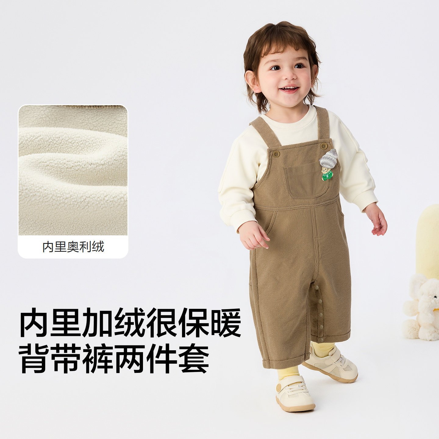背带裤两件套,内里加绒保暖舒适